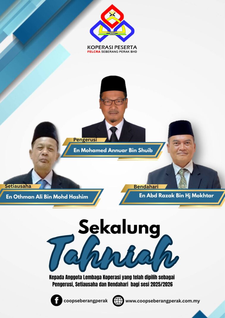 Tahniah buat barisan kepimpinan tertinggi Anggota Lembaga Koperasi bagi sesi 2025/2026 yang telah dilantik seperti berikut :